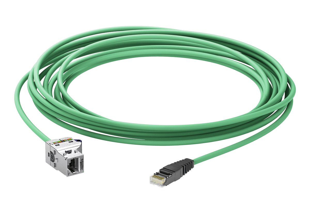 Kablet er udstyret med en præ-termineret RJ45-konnektor (hun) i den ene ende og et RJ45-stik (han) i den anden. Dette gør det velegnet til installationer, hvor den faste installation afsluttes under nedhængte lofter eller EDB-gulve, og hvor der er behov for at flytte strøm- og dataudtag fleksibelt ved hjælp af nedføringsstave.