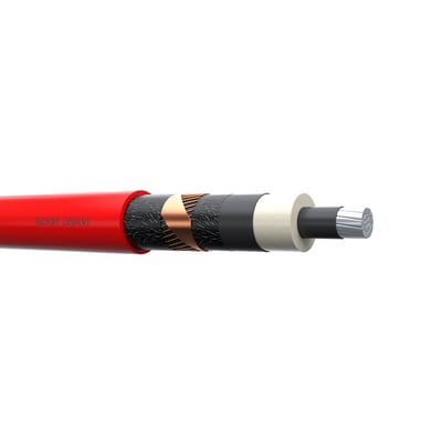 Mellemspændingskabel 1x95/25 mm² (N)A2XSY 20 kV, med aluminiumsledere og XLPE (PEX) isolation. Nominel diameter på 34 mm.