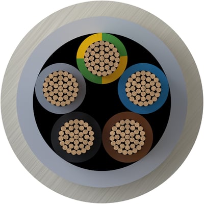 - Udvendig kappe: Termoplastisk compound, UV-stabiliseret