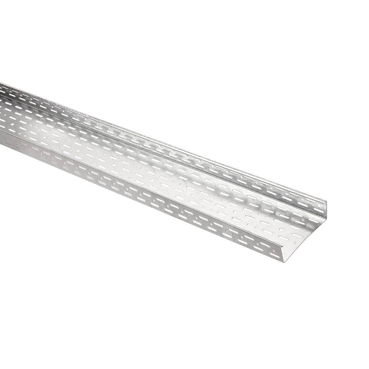Perforeret kabelbakke med standard sidehøjde. Kan samles med tilbehør for en sidehøjde på 60 mm.