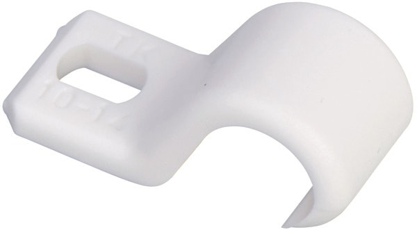Fleksibel kabelbøjle TK 10-14 i hvid plast til montering af kabler og rør. Kan modstå højt tryk samt store temperaturudsving. Bredt sortiment. Kan fastgøres med sømplug eller træskrue.