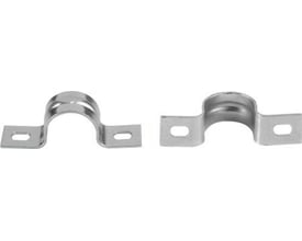 Kabelbøjler med 2 lap (huller til skruer) til kabler eller rør med en diameter på Ø15 mm. Bøjlen har Ø4,5x6 mm skruehuller.