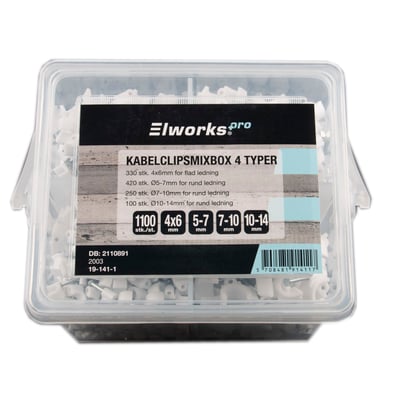 Denne box indeholder et assorteret udvalg af kabelclips i fire forskellige størrelser, hvilket gør den ideel til en bred vifte af kabelorganiseringsopgaver. Clipsene er designet til nemt og sikkert at fastgøre kabler til forskellige overflader, så du kan holde styr på ledninger og skabe et pænt og organiseret miljø.