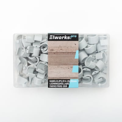 Runde kabelclips til fastgørelse af kabler med en diameter på 14-20mm. Leveres i pakke med 100 stk.