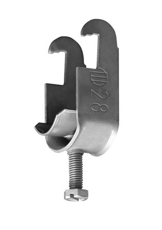 Kabelklemme designet til forankringsskinner, flade stålstænger, U- og C-profiler samt kabelstiger af typen MP-S. Fremstillet af rustfrit stål.