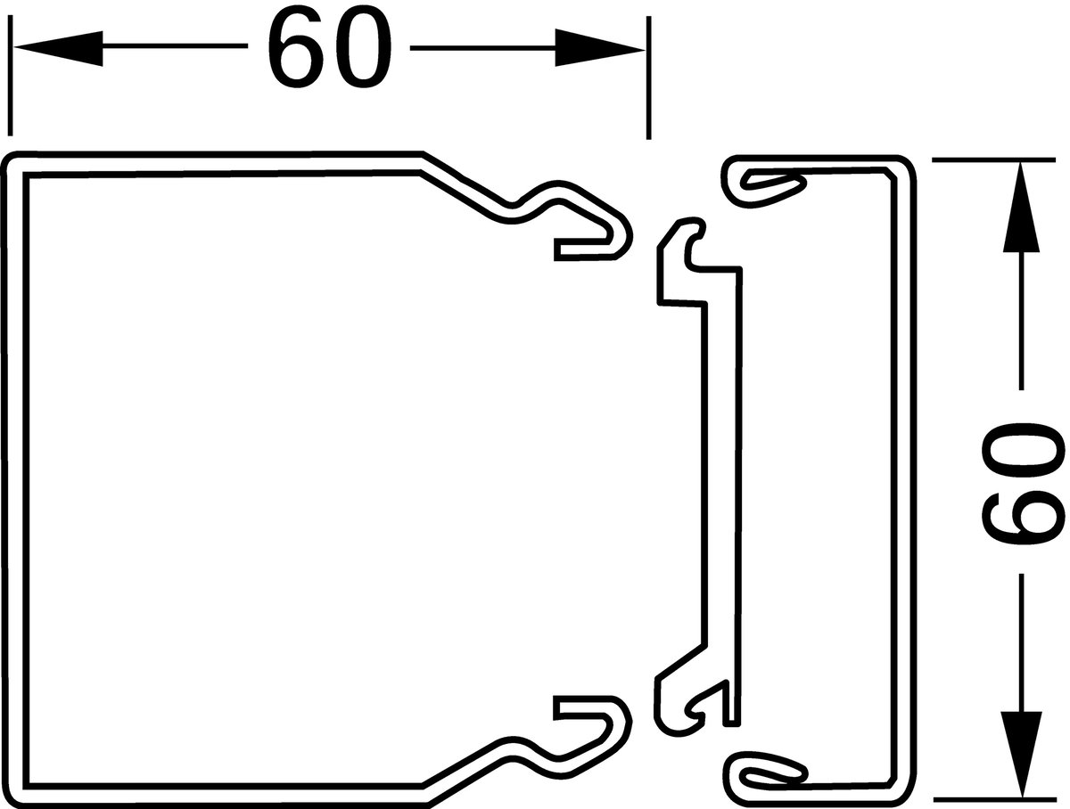 Komplet kabelkanal type LFS 60060 VZ i elforzinket stål. Leveres med bund, låg og kabelholdere.