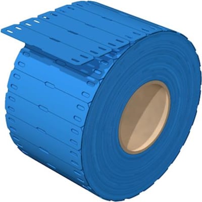 Blå kabelmærke SFX-DT 11/60 mm fra Weidmüller, fremstillet i PA halogenfri. Mærket er uden print og egnet til fødevareindustrien.