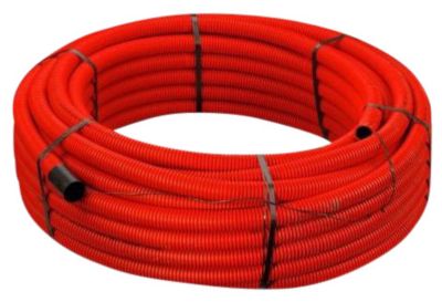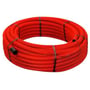 EVOCAB FLEX PE-kabelrør til nedgravning. Indvendig glat og udvendig korrugeret. Leveres med træksnor og muffe. Diameter: 75 mm, Længde: 50 m, Farve: Rød.