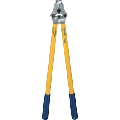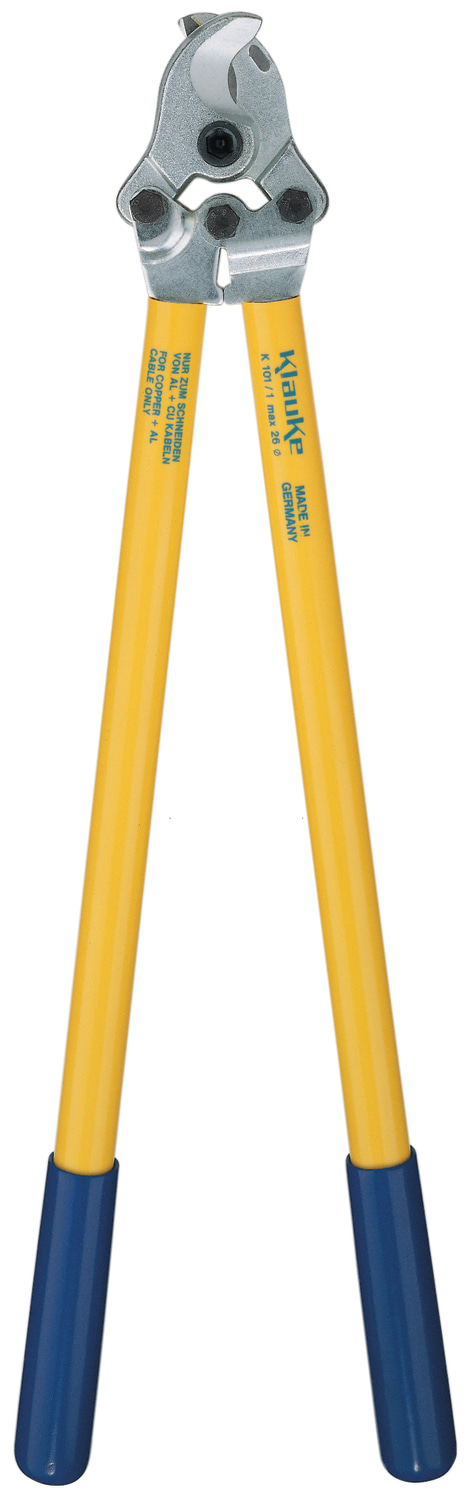 Kabelsaks fra Klauke til klipning af kobber og aluminium op til Ø26mm. Saksen er designet med tohåndsbetjening og godt håndtagsudveksling, hvilket sikrer en fremragende skæreeffekt, selv med fintrådede ledere. Den er udstyret med et ru håndtag for sikkert arbejde.