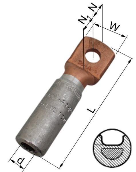Aluminium kabelsko med kobberlaske AKK300-16 til 300mm2 fåtrådige (klasse 2) Al-leder. Laske M16. Rundpresning af leder kræves.