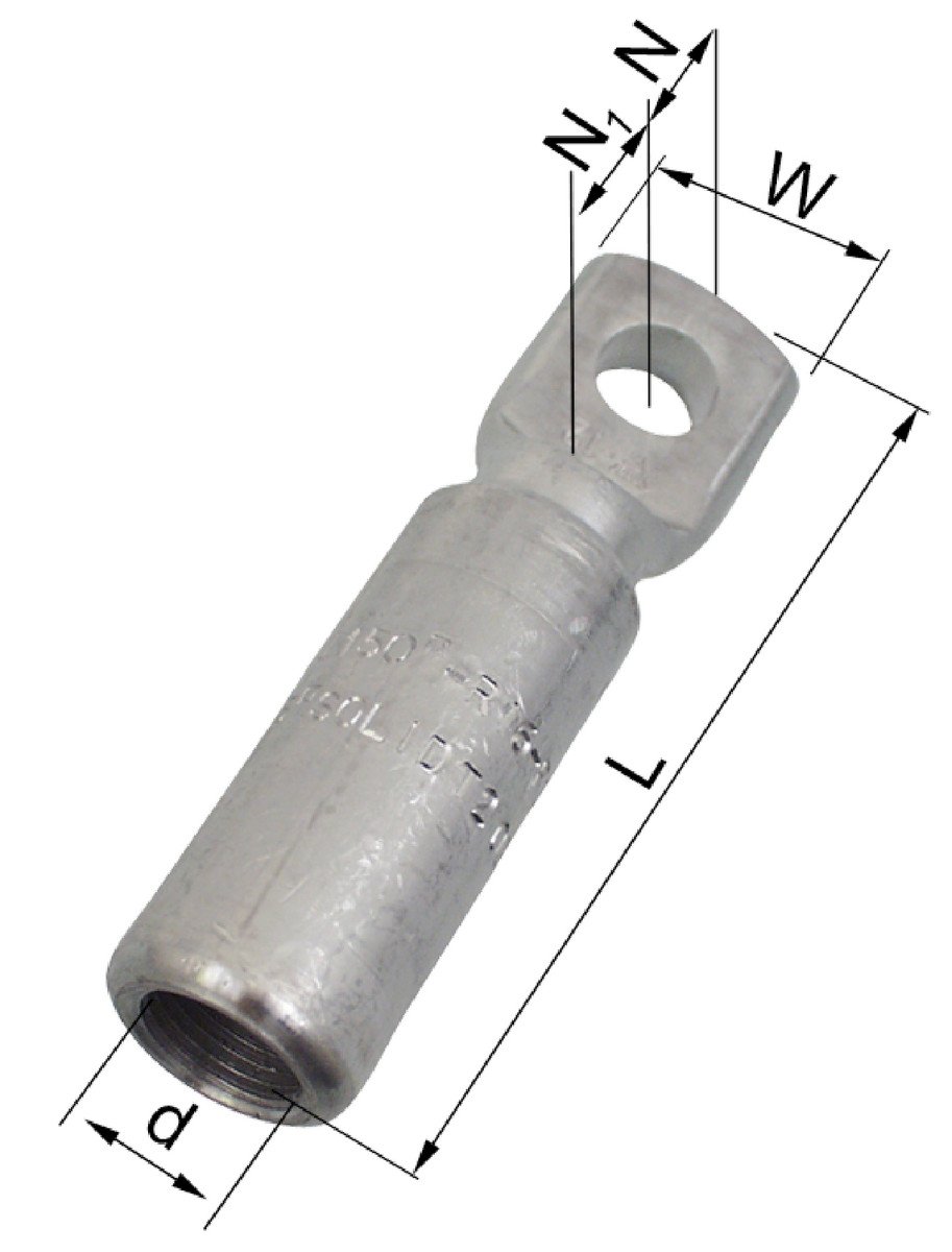 Aluminium kabelsko AK630A-1 til 630mm2 fåtrådede (klasse 2) Al-leder. Laske blank. Forbindelsen skal dornpresses to gange. Matrice/dornnr.: 52M/52D.