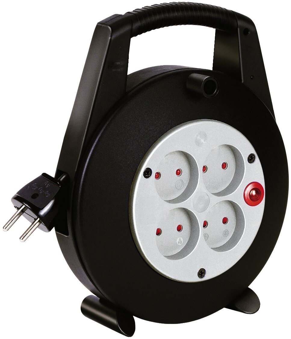 Kabeltromlen er udstyret med 4 udtag, der ikke har jordforbindelse, hvilket gør den velegnet til udstyr, der ikke kræver jord. Den integrerede termosikring beskytter mod overbelastning og sikrer en sikker drift.