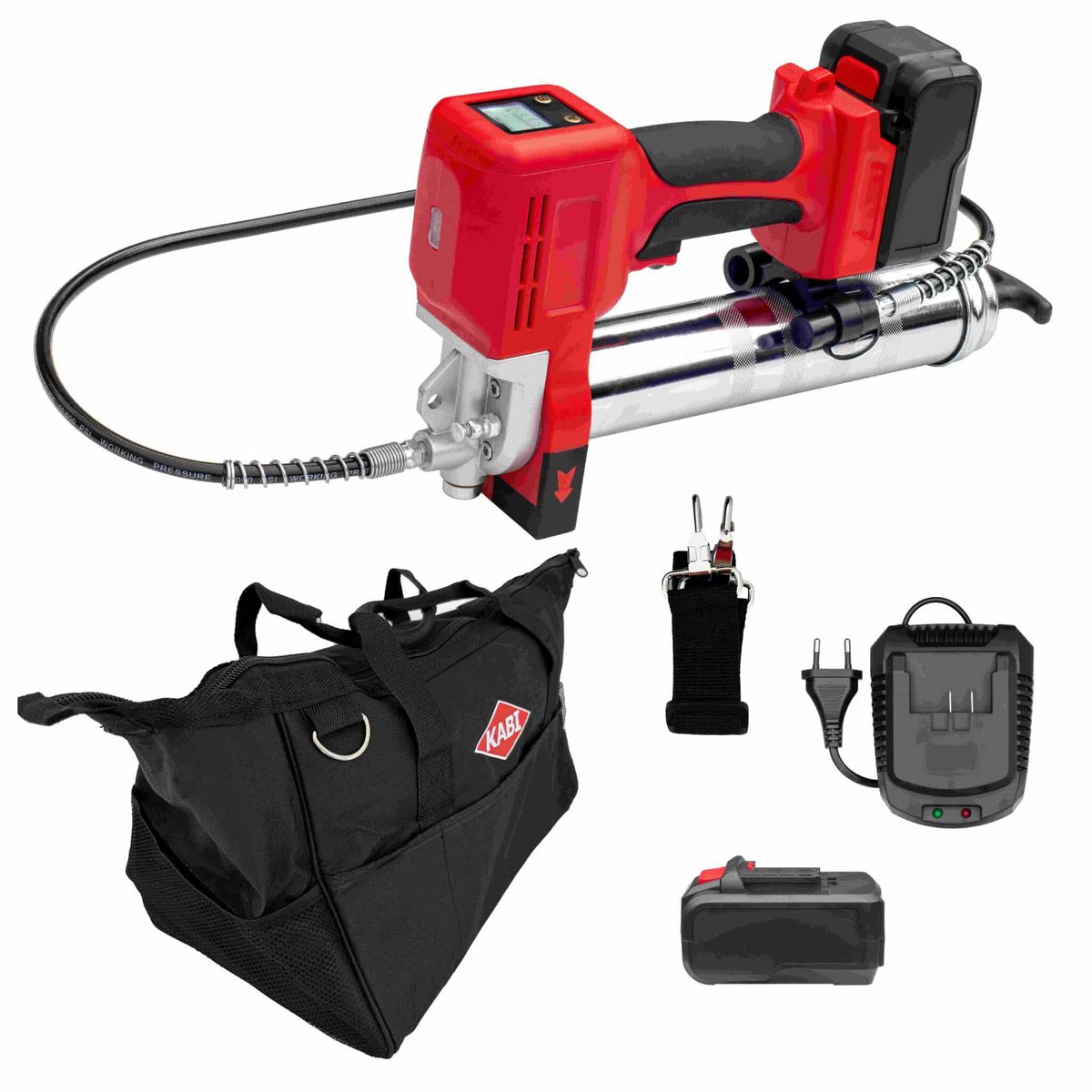 Denne 21V akku fedtpresse fra KABI er udstyret med et kraftfuldt lithium-ion batteri på 4,0Ah, der sikrer lang driftstid. Den er designet til at kunne anvende standard 400 grams fedtpatroner (DIN 1284), løst fedt eller SIC patroner, hvilket giver stor fleksibilitet i brug.