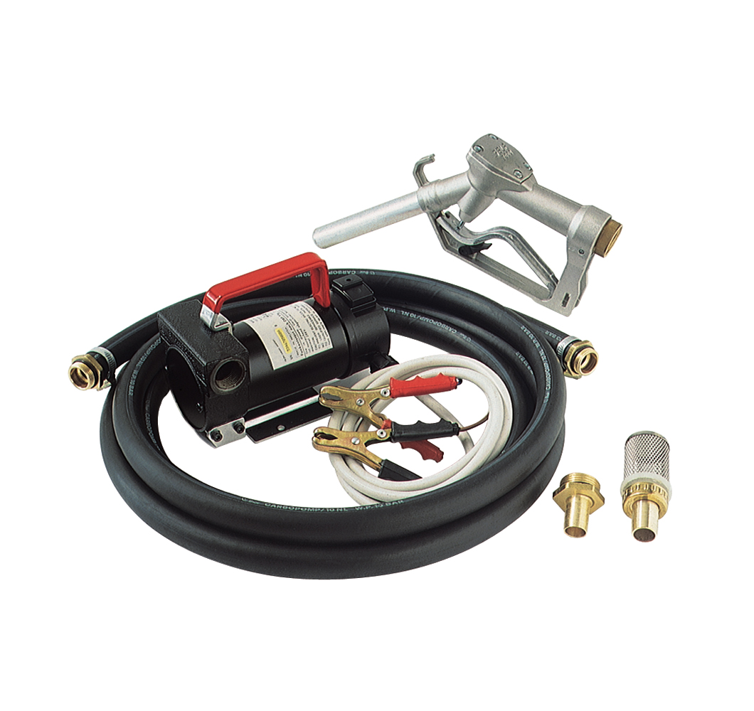 Komplet KABI el-pumpesæt til diesel og fyringsolie med manuel pistol. Inkluderer selvansugende lamelpumpe, 4 m antistatisk slange, bundfilter og fittings.