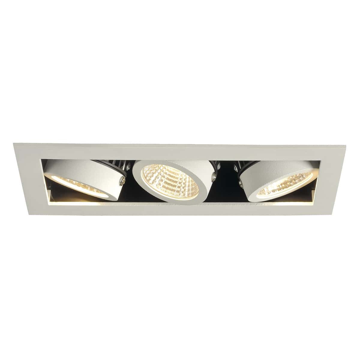 KADUX 3 SET indbygningsspot med 3 trippel LED-lys. 3000 K, rektangulær, mat hvid finish og 38° lysspredning. Inkluderer driver.