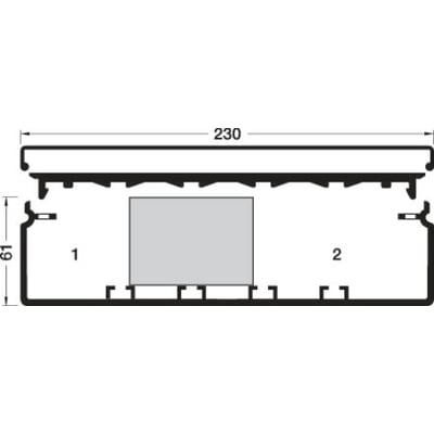 Installationskanal bund type FB 60230 i perlehvid. Designet med et udvendigt låg giver et diskret udseende, da låget dækker hele fronten uden brydende linjer.