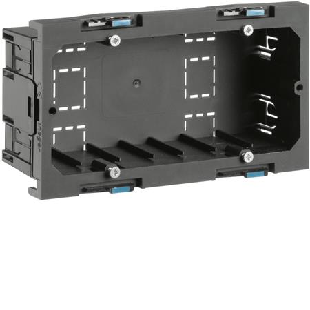 Denne frontrastende kanaldåse fra Hager er designet til 80 mm åbninger og er ideel til installation af dobbelte Europa stik med sidejord (Schuko). Den er velegnet til både horisontal og vertikal montering i kanaler.
