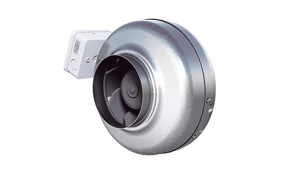 Kanalventilator type CK til mindre ventilationsanlæg. Radialventilator med 230V motor og koblingsdåse.