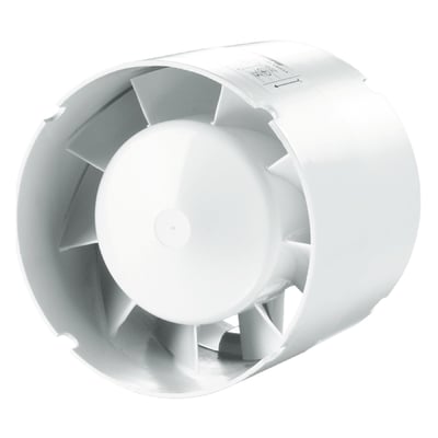 Effektiv kanalventilator med kuglelejer til indbygning i loftsrum. Monteres direkte i ventilationskanalen fra baderum eller bryggers.