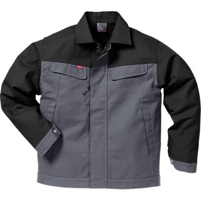 Tofarvet bomuldsjakke med kontraststikninger, knapper foran, justerbar talje og manchetter. Refleksvinger i sidesømme og praktiske lommer. Anbefalet til industrivask og OEKO-TEX® certificeret.