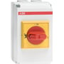 3-polet lastafbryder, 25A ved 1000V DC-21. Plastikkapsling IP65 med 2xM20 i top/bund, rød/gul drejegreb, låsbar med op til 3 hængelåse.