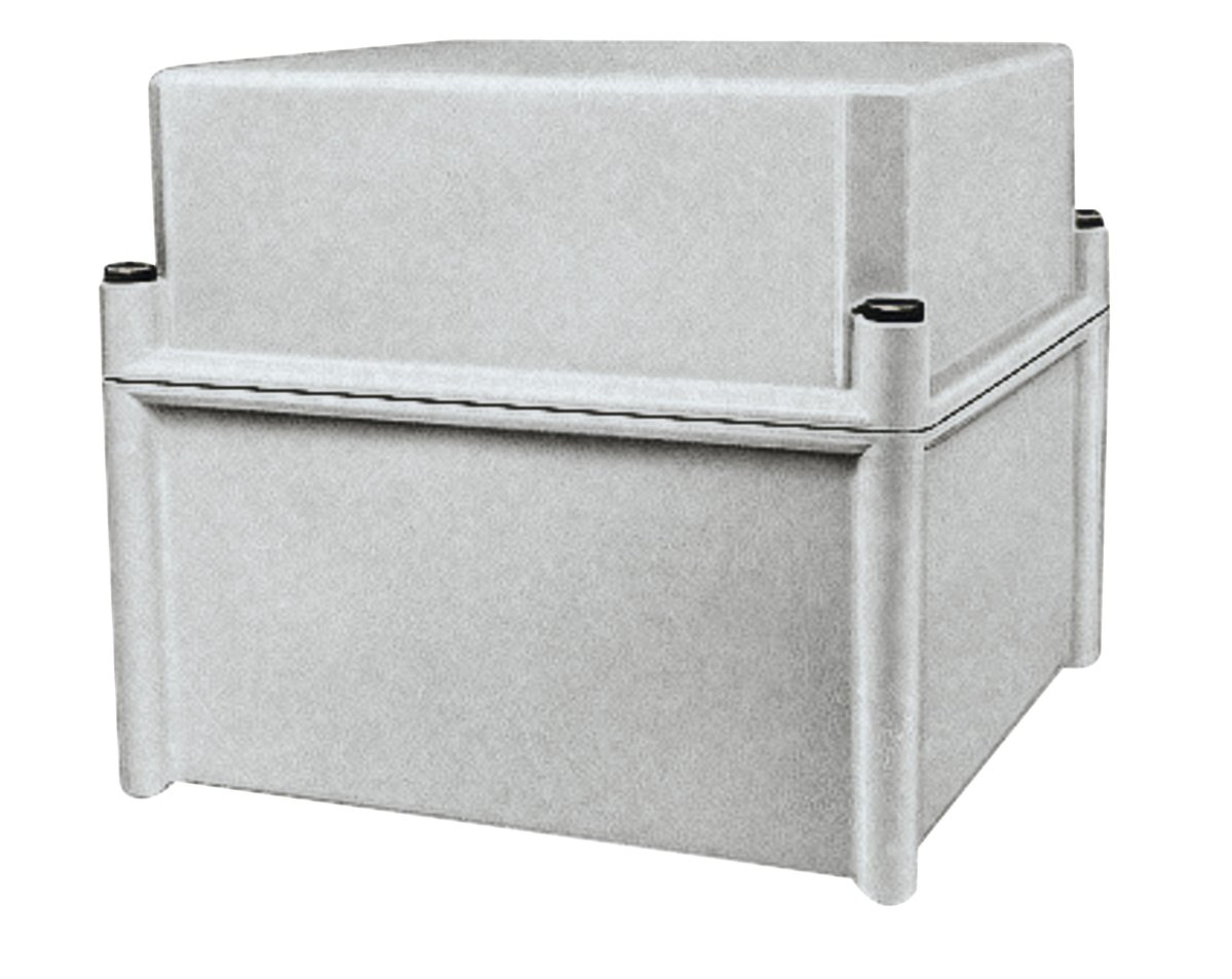 Kapsling i grå PC (polycarbonat) med RAL 7035. Mål: 540x540x180mm. Låsetype: slot screw.