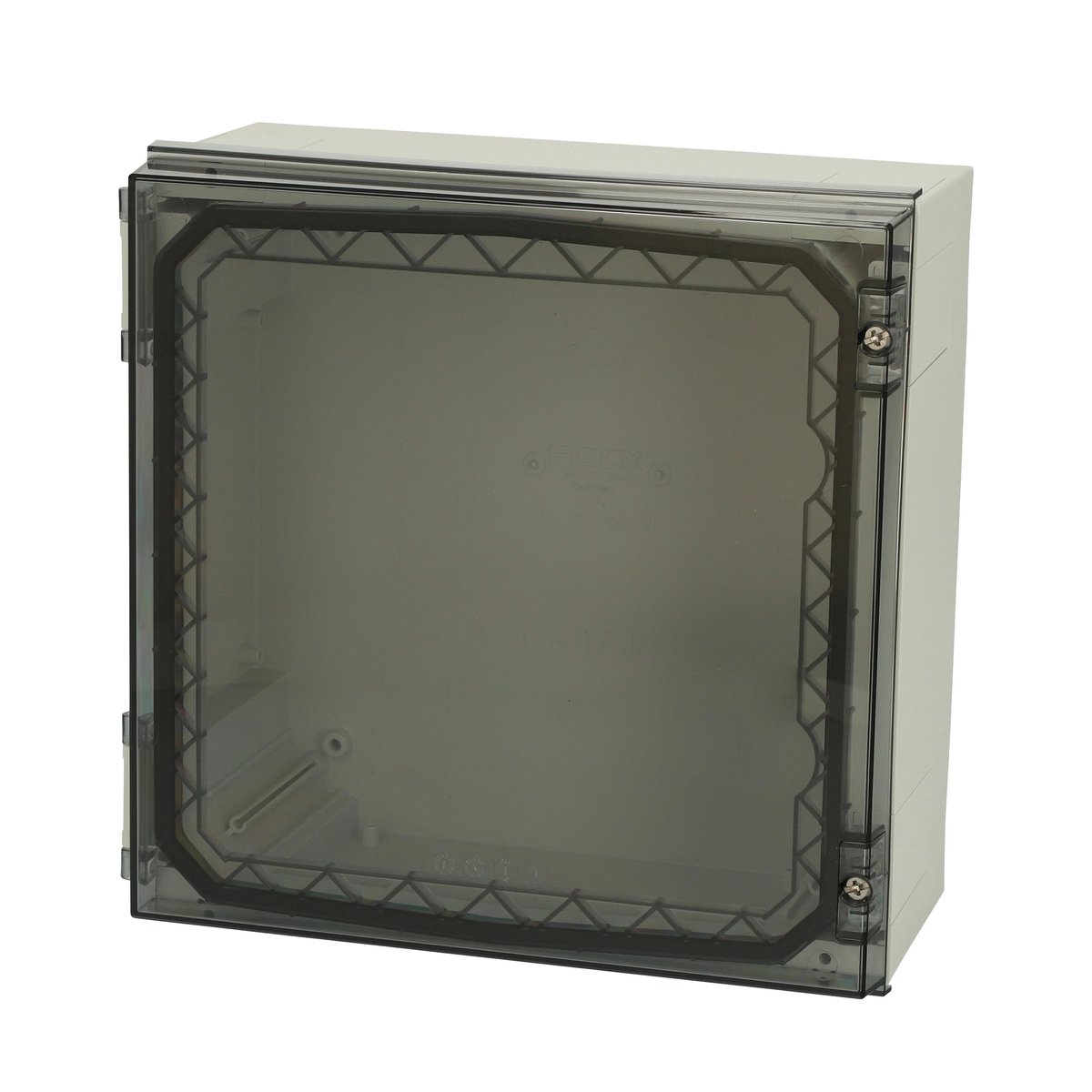Robust og beskyttende kasse fra Fibox. NEO PC 323215 T med transparent dæksel, dimensioner 320x320x150 mm. Dobbeltisoleret og ikke-korroderende.