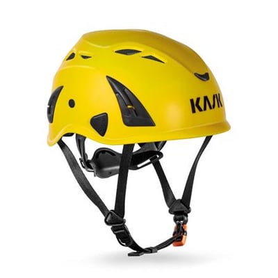 Denne gule Kask Superplasma sikkerhedshjelm er designet med et quick fit system, der sikrer nem og hurtig tilpasning. Hjelmen er udstyret med særlige fastgørelsespunkter, der gør det let at tilkoble høreværn, visir og lamper, hvilket øger fleksibiliteten i forskellige arbejdssituationer.