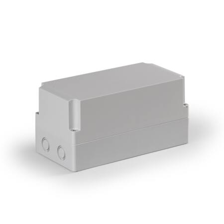 Grå kasse fra Ensto, ideel til diverse elektriske installationer. Dimensioner: 125 x 250 x 125 mm. Med metriske knockouts og låg.