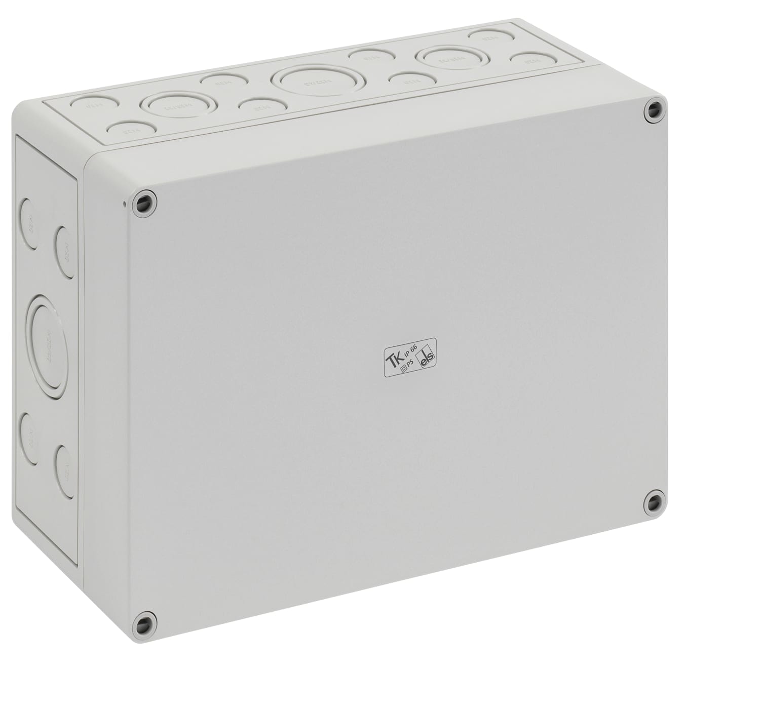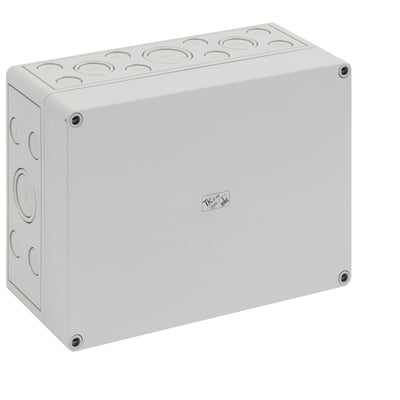 Tomt kabinet i polystyren, grå (RAL 7035). IP66-klassificering og IK07 beskyttelsesgrad. Halogenfri med metriske forprægninger.