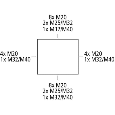 - Antal flangeblanketter: 24 x M20 + 4 x M25/32 + 4 x M32/40