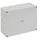 Grå montagekasse (RAL 7035) af polystyrol med metriske udslagsblanketter. Halogenfri, flammehæmmende og slagfast. IP66, dobbeltisoleret og resistent over for temperaturer fra -40 °C til 70 °C.