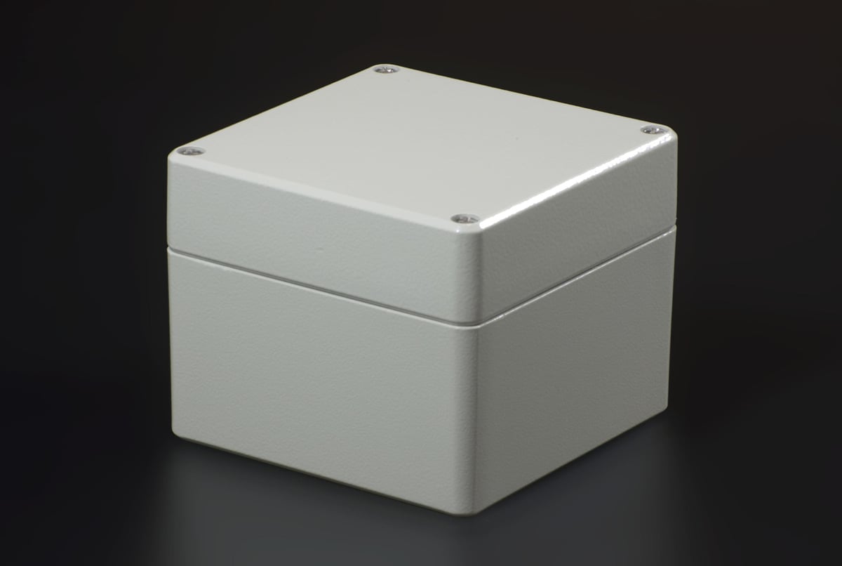 Letmetalkasse AS, 100x100x80mm. Fremstillet i aluminium med en hvid, grå finish og IP66-klassificering.