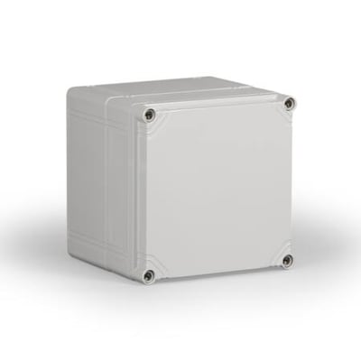 Ensto Cubo O/C kapsling i polycarbonat med flange udstansninger ifg. SFS standard. Standard grå RAL 7035, låg i transparent eller grå.