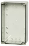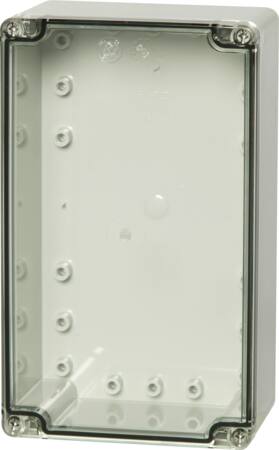 Kasse 120x200x75 mm i polycarbonat med transparent dæksel.