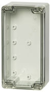 Kasse, 80x160x65 mm, polycarbonat med transparent dæksel.