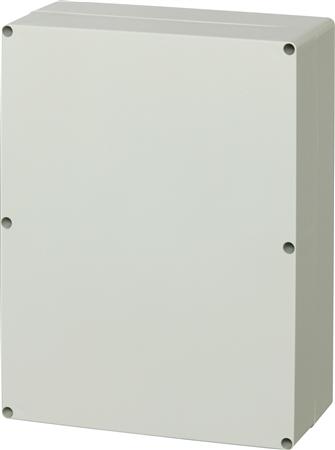 Kassebund med skruer til montageplade/DIN-skinne og gråt dæksel med PUR pakning og dækselskruer af rustfri stål.