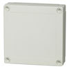 Denne kassebund fra MNX serien er fremstillet af polycarbonat og måler 130x130x35 mm. Den leveres med en TPE pakning og skruer til montageplade eller DIN-skinne. Det grå dæksel er udstyret med dækselskruer af polyamid.