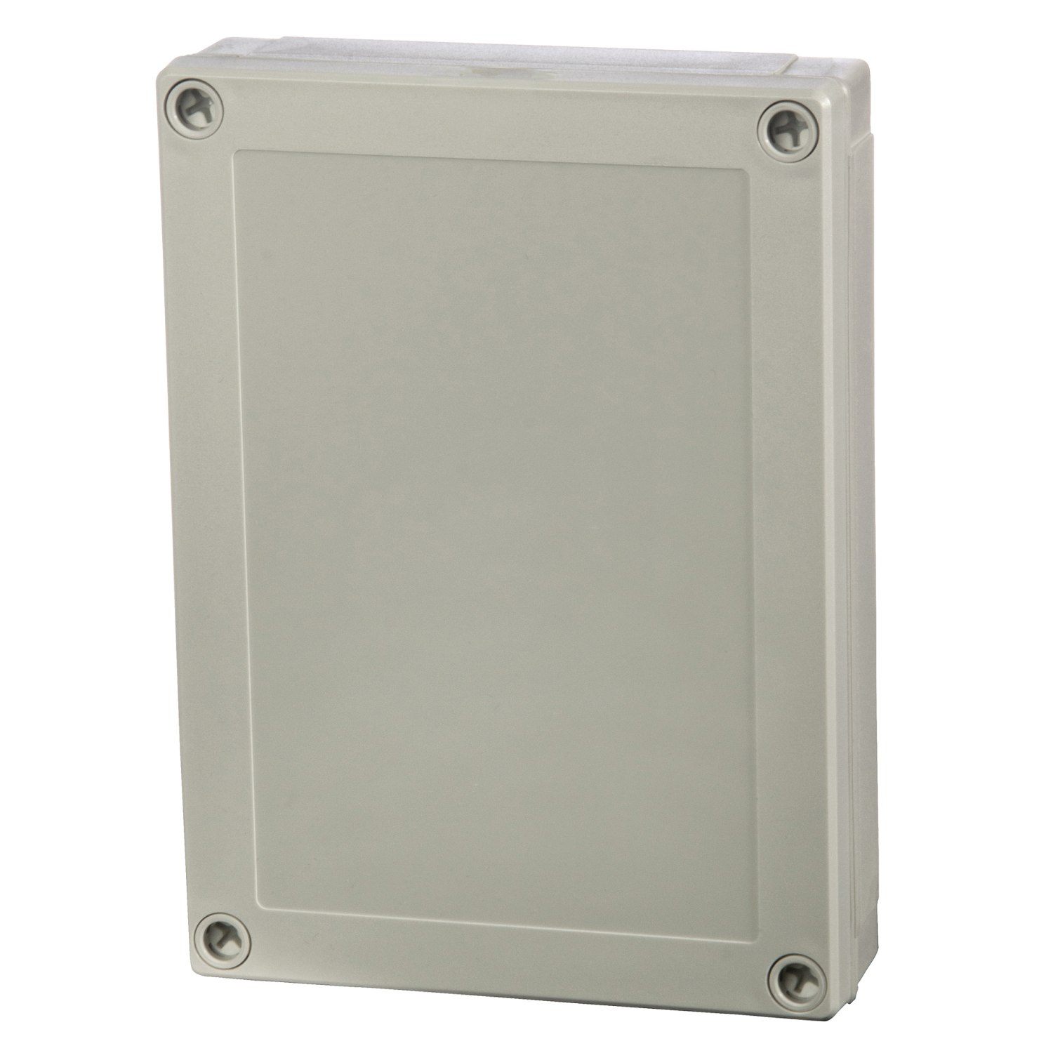 Kassebund med TPE pakning, skruer til montageplade/DIN-skinne og dæksel med dækselskruer af polyamid. Lav kassebund, gråt dæksel.