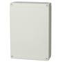 Monteringskasse i polycarbonat, 255x180x63 mm, med gråt dæksel og dækselskruer. Inkluderer skruer til montageplade/DIN-skinne.