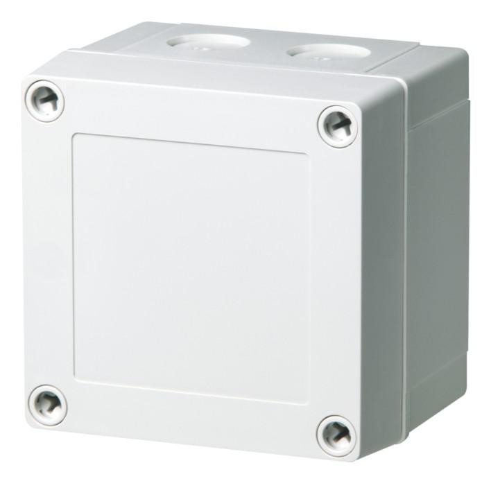 MNX PCM monteringskasser i polycarbonat findes i størrelser fra 100x100x60 til 180x255x175 mm. Denne model måler 100x100x75 mm.