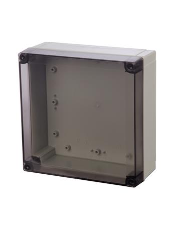 Fibox PICCOLO montagekasse i polycarbonat med gråt låg. Ideel til løsninger med trykknapper, rækkeklemmer, motorstartere, elektronik og sensorer.