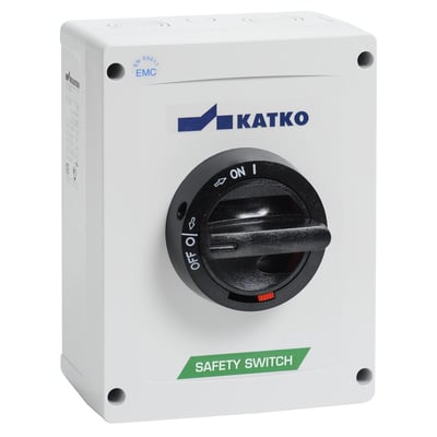 Frontbetjent afbryder i ABS. EMC udgave med kobberbelagt kapsling. 3 poler, 32A AC23, IP65. Velegnet til rengøringsintensive miljøer.