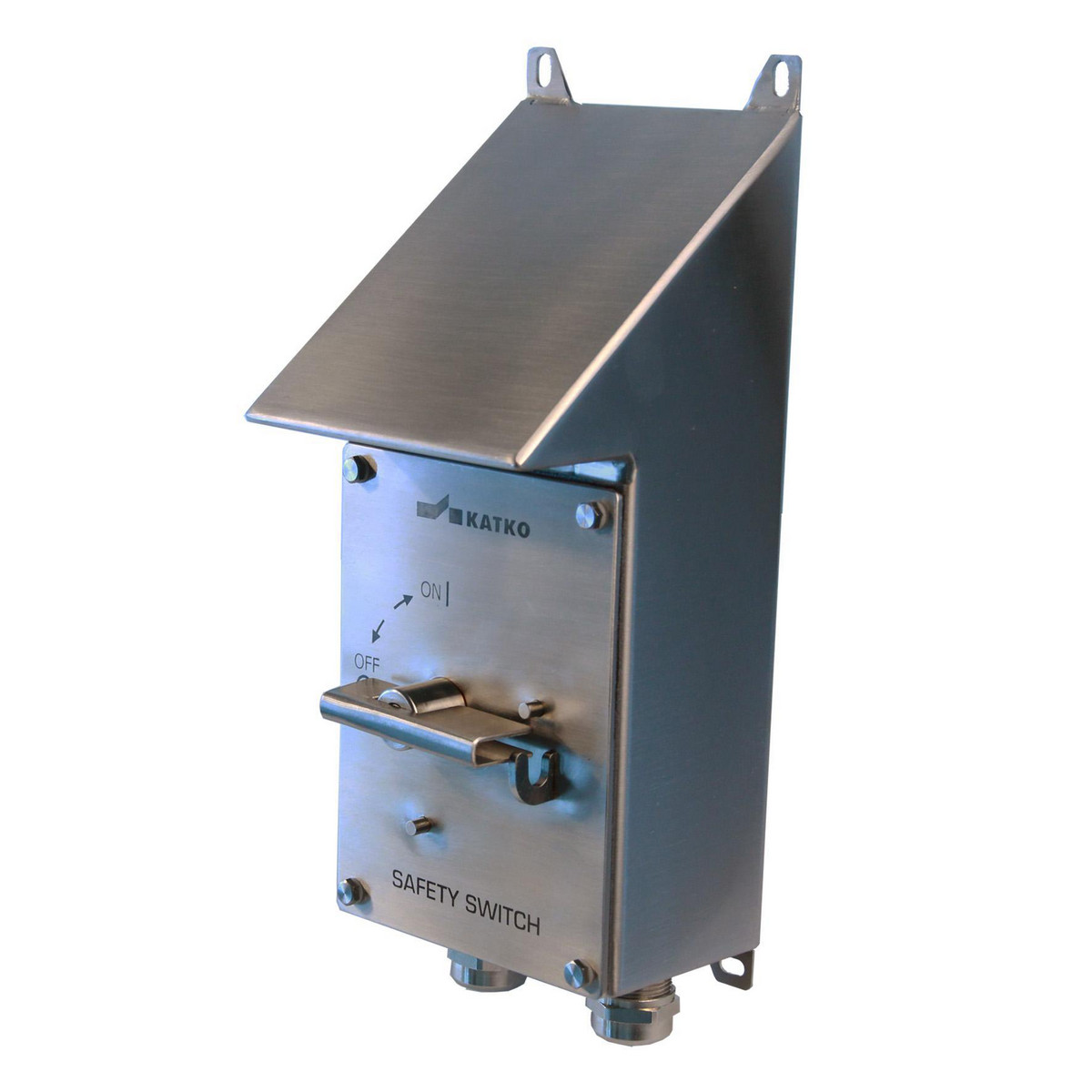 Katko Hygiejne reparationsafbryder 6P 16A med rustfri kapsling og stålhåndtag. Designet for nem rengøring i fødevareindustrien. IP66 AISI 316 syrefast rustfrit stål.