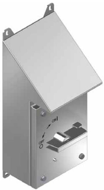 Katko hygiejnisk reparationsafbryder 3P 63A + 1 hjælpekontakt No/Nc. Rustfri kapsling H24 hus med rustfrit stålhåndtag og 2xM25 + M16.