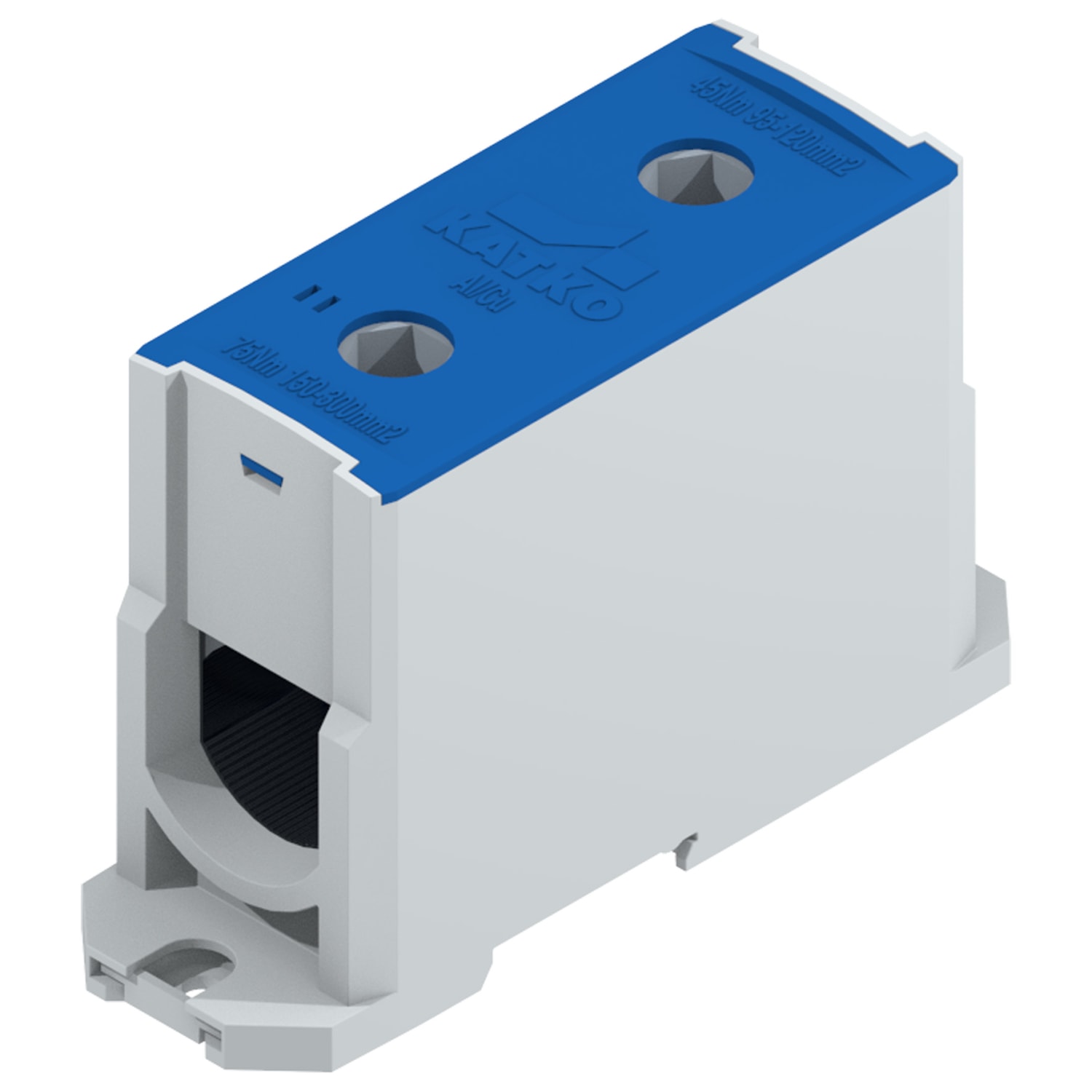 UL-listede klemme med bi-metal terminal til Al/Cu kabler. Berøringssikker (IP20) med polyamidhus. Certificeret iht. IEC 61238-1 klasse A og IEC 60947-7-1. Farve: Blå.