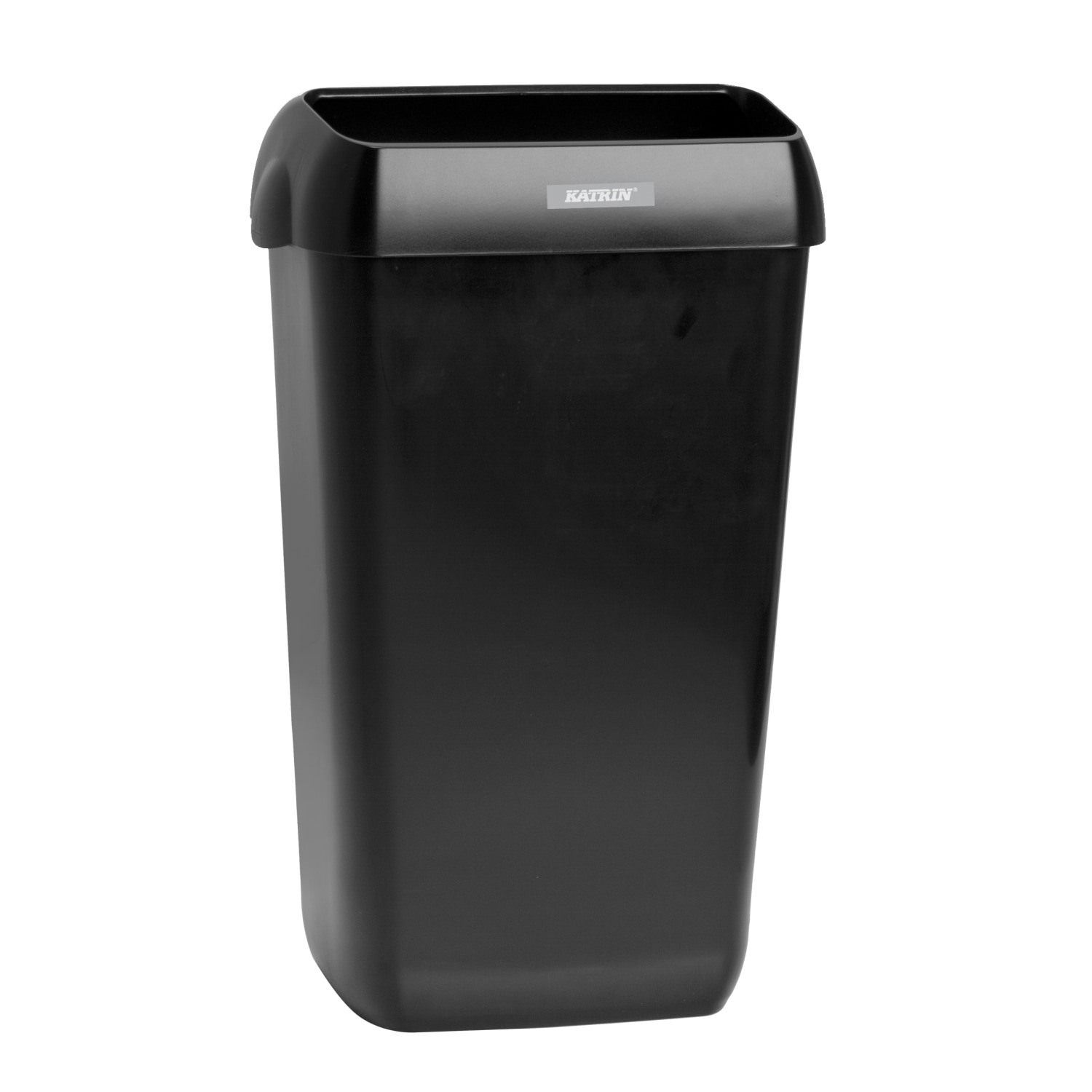 Katrin affaldsspand i sort plast med vægbeslag, 25 liter, model 92261. Ideel til effektiv affaldshåndtering i professionelle miljøer.