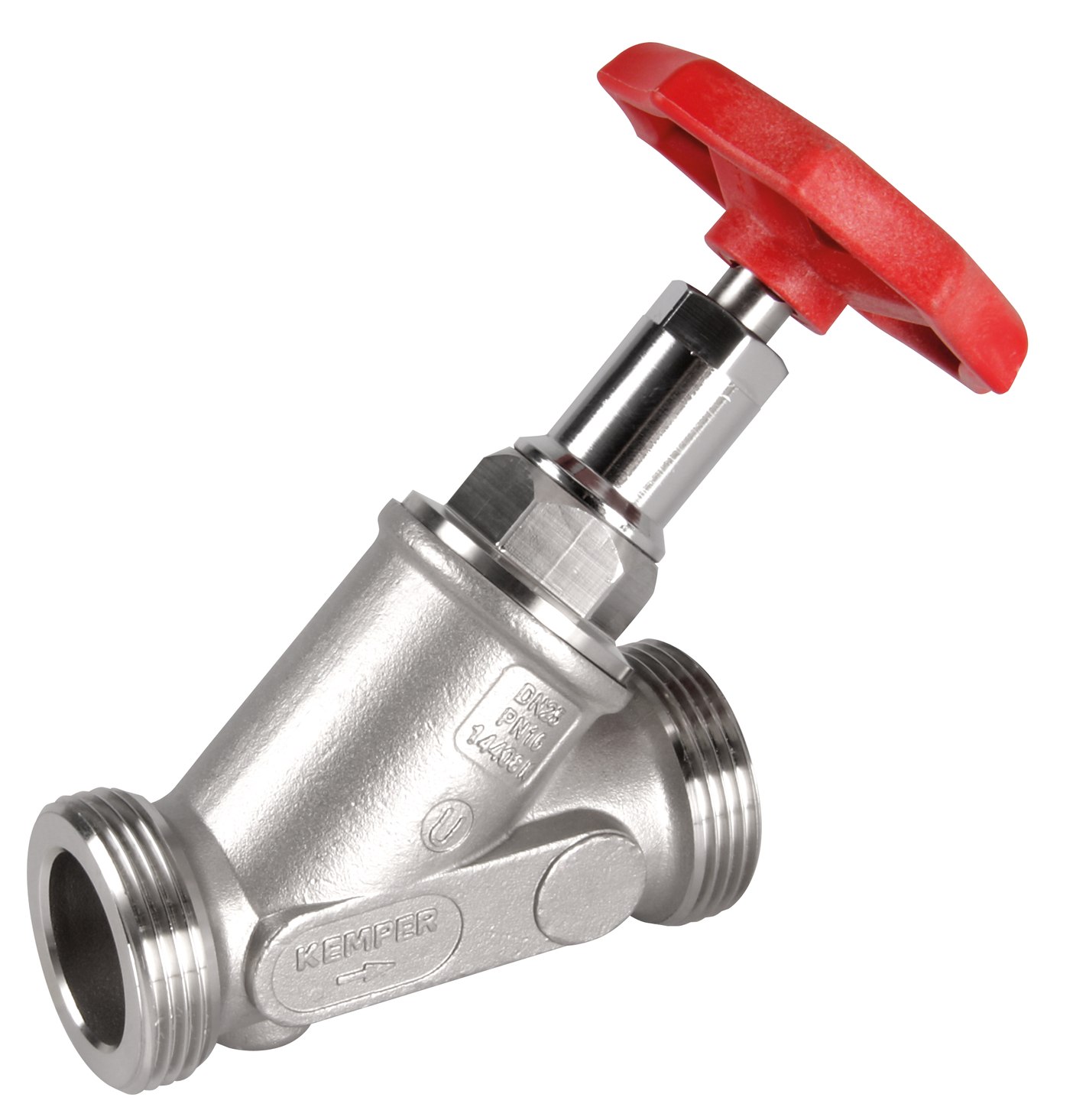 Rustfri Kemper Niro fristrømsventil med 1 3/4" udvendig gevind og uden aftapningsventil.