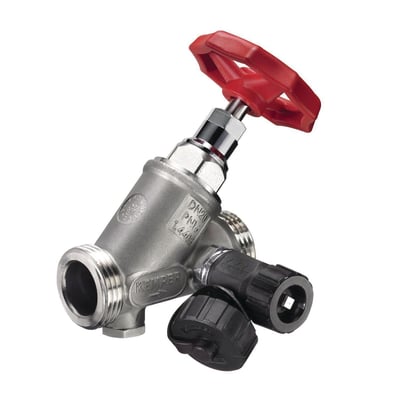 Rustfri fristrømsventil med aftapningsventil og 3/4" udvendig gevind.