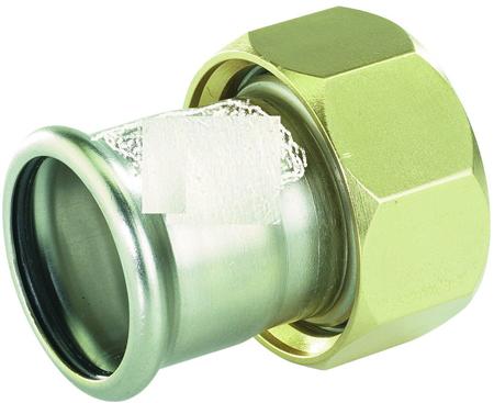 Rustfri forskruning med 89mm presmuffe og 3 1/2" fladtætnende omløber.